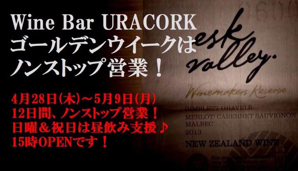 Wine Bar URACORK、本日より12日間ノンストップ!