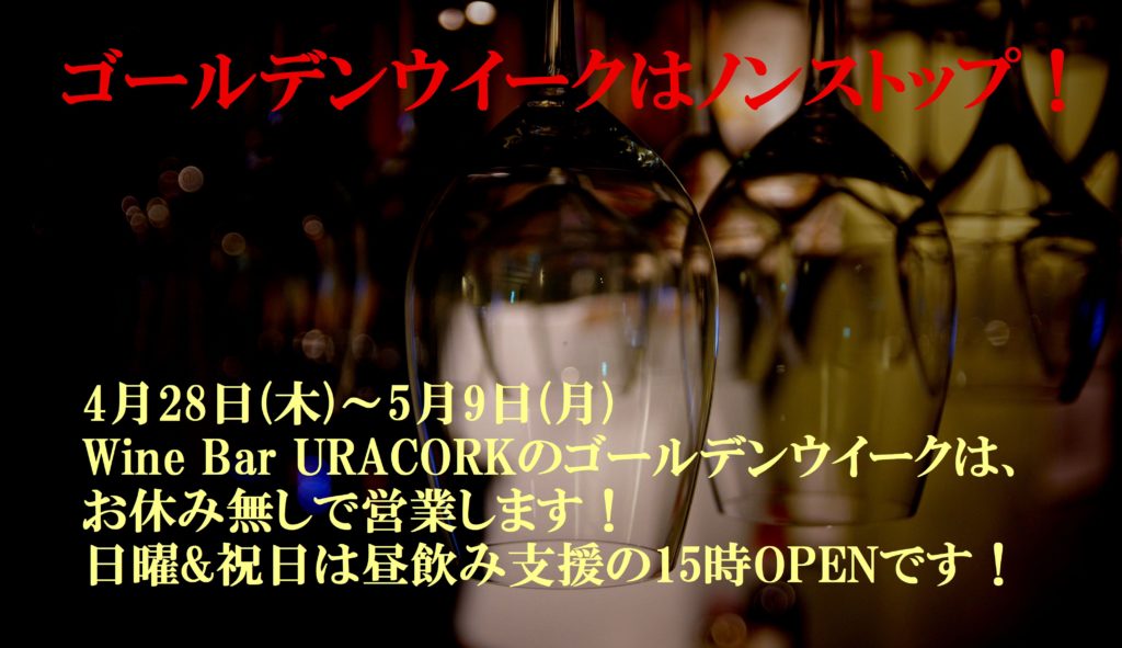 Wine Bar URACORKのゴールデンウイークは、お休み無しのノンストップ!
