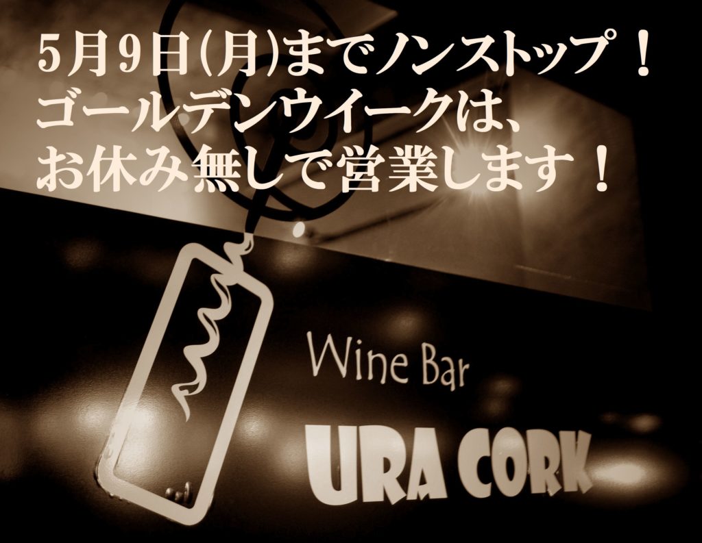 Wine Bar URACORKのゴールデンウイークは、お休み無しのノンストップ!