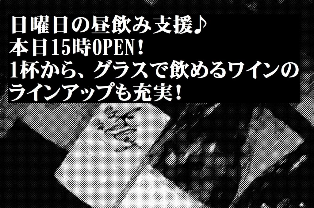 日曜日の昼飲み支援、本日15時OPENです!