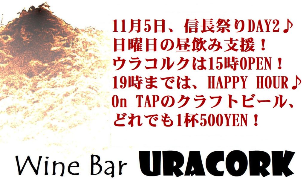 日曜日の昼飲み支援、Wine Bar URACORK、本日15時OPEN♪