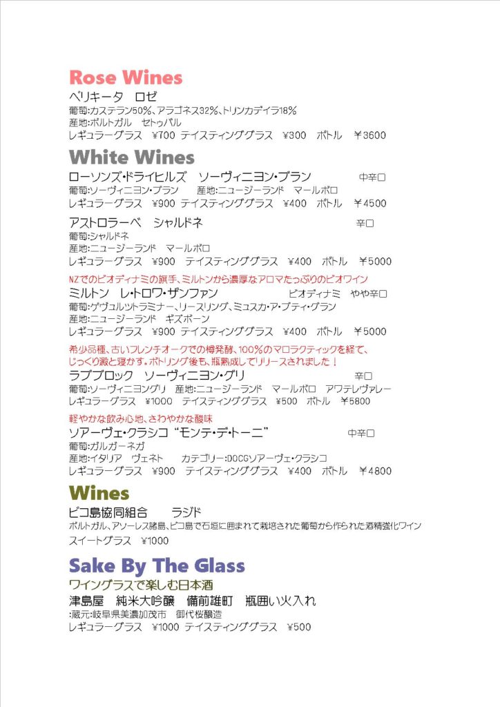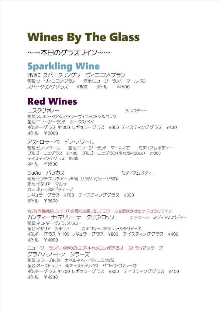 今日のグラスワインリストに新たに加わったワイン、